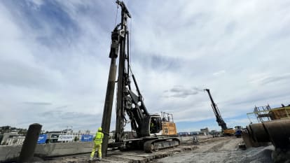 – Vi har hentet maskinene fra maskinparken vår i Danmark. Den ene – vår LB20 – har vi utstyrt med splitter nytt DTH-utstyr som kan håndtere harde materialer, som norsk sprengningsstein. Den kraftige maskinen skal erstatte det overliggende sprengningslaget med sand og grus. Etter dette må vår LB36 sekantpelemaskin bore 52 peler på 21 meter og 52 peler på 8 meter», sier Andreas Oll, prosjektleder i Hercules Fundering, NCC Infrastructure i Danmark.