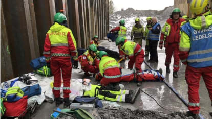 Øvelsen ble gjennomført i spuntgropen på Wergelandstunnelen og HMS-leder Vegard Olsen understreker viktigheten av å øve samhandling sammen med byggherren Bane NOR og redningsetatene.